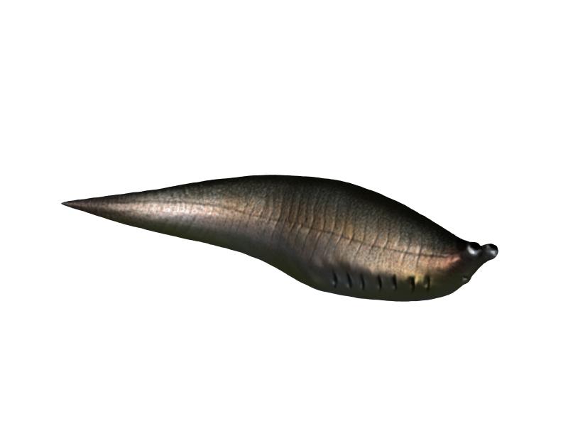 Metaspriggina, come la più nota Pikaia, era un antichissimo cordato, pesce ancestrale antenato di tutti i vertebrati. Visto così ha l’aspetto di un lumacone. Invece aveva una specie di colonna vertebrale arcaica, e sembra anche che possedesse un cranio (i fossili non permettono di stabilirlo con certezza). I fossili di Metaspriggina sono databili al periodo Cambriano, circa 500 milioni di anni fa.